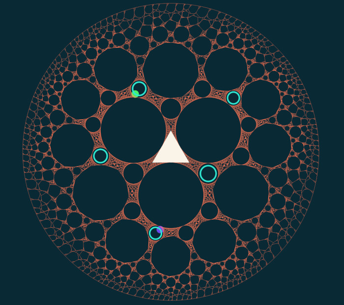 Why do mathematicians care about problems like this? There are a few different reasons. Firstly, there is the connection to the physical world: the standard billiards models a ball bouncing in a table or a photon in a mirrored room, and outer billiards was originally conceived as a very coarse model of planetary motion. Secondly, questions of dynamics in the plane are interesting because of how much detail is hiding in a space that seems so familiar. I might say “I know Euclidean geometry like the back of my hand” but just as I might wonder to see the skin of my hand under a microscope, there is so much still to learn about the behaviour of even the simplest geometric systems. Thirdly, the experimental and theoretical tools we develop to study dynamical systems often offer returns in other areas of mathematics. The definition of a dynamical system is broad enough that many results originally formulated in the language of dynamical systems theory apply to a large and diverse collection of interesting problems.