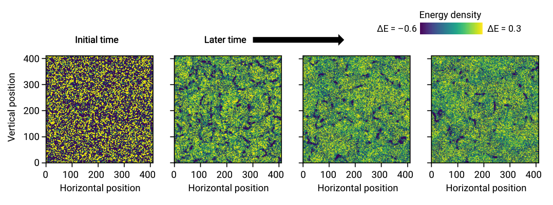 Fortunately, while the vortices might not show up in the total particle number function, we can still see them very clearly with our eyes. We can therefore come up with some creative “observables”, i.e., some quantities to measure or observe, to quantify this “hidden” scaling behaviour. One set of suitable observables can be borrowed from the world of topological data analysis, which is suitable for the underlying investigation because it stores a lot of information about the aforementioned defects, which are also topological.